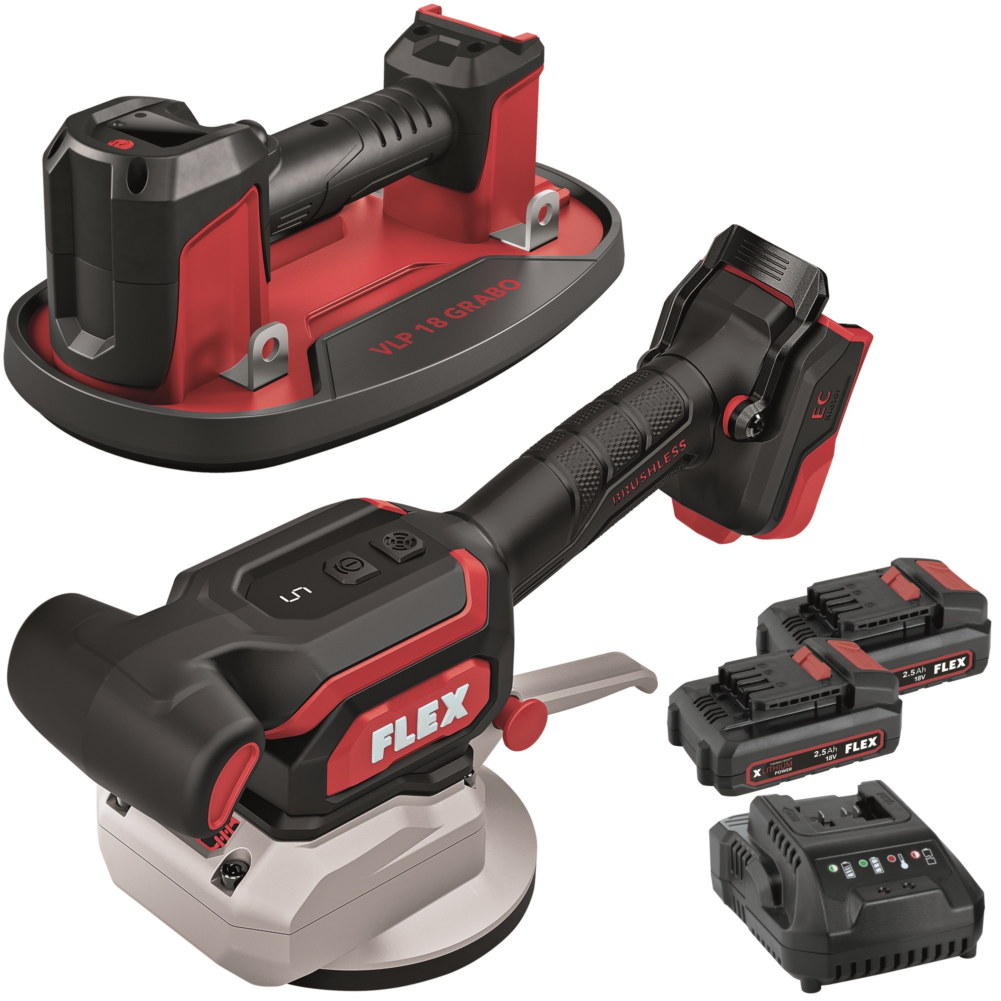 Das leistungsstarke Kombi-Set aus Akku-Vakuumheber VLP 18 C, Akku-Fliesenrüttler TV 18-EC C und dem P-Set 22 Q bietet professionelle Unterstützung bei allen Hebe- und Verlegearbeiten. Beide Maschinen basieren auf dem FLEX 18V System und sind für anspruchsvolle Anwendungen im Handwerk konzipiert.