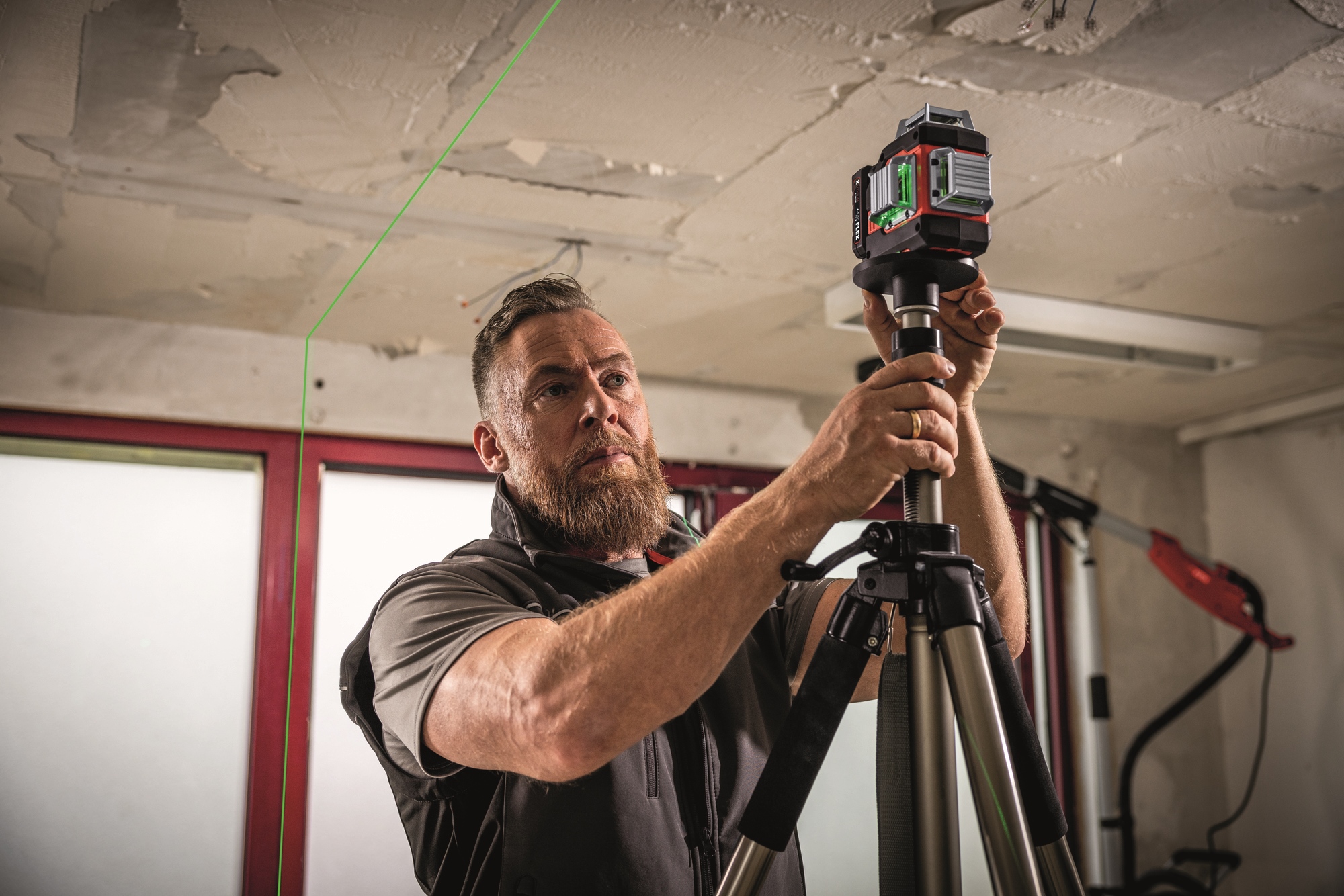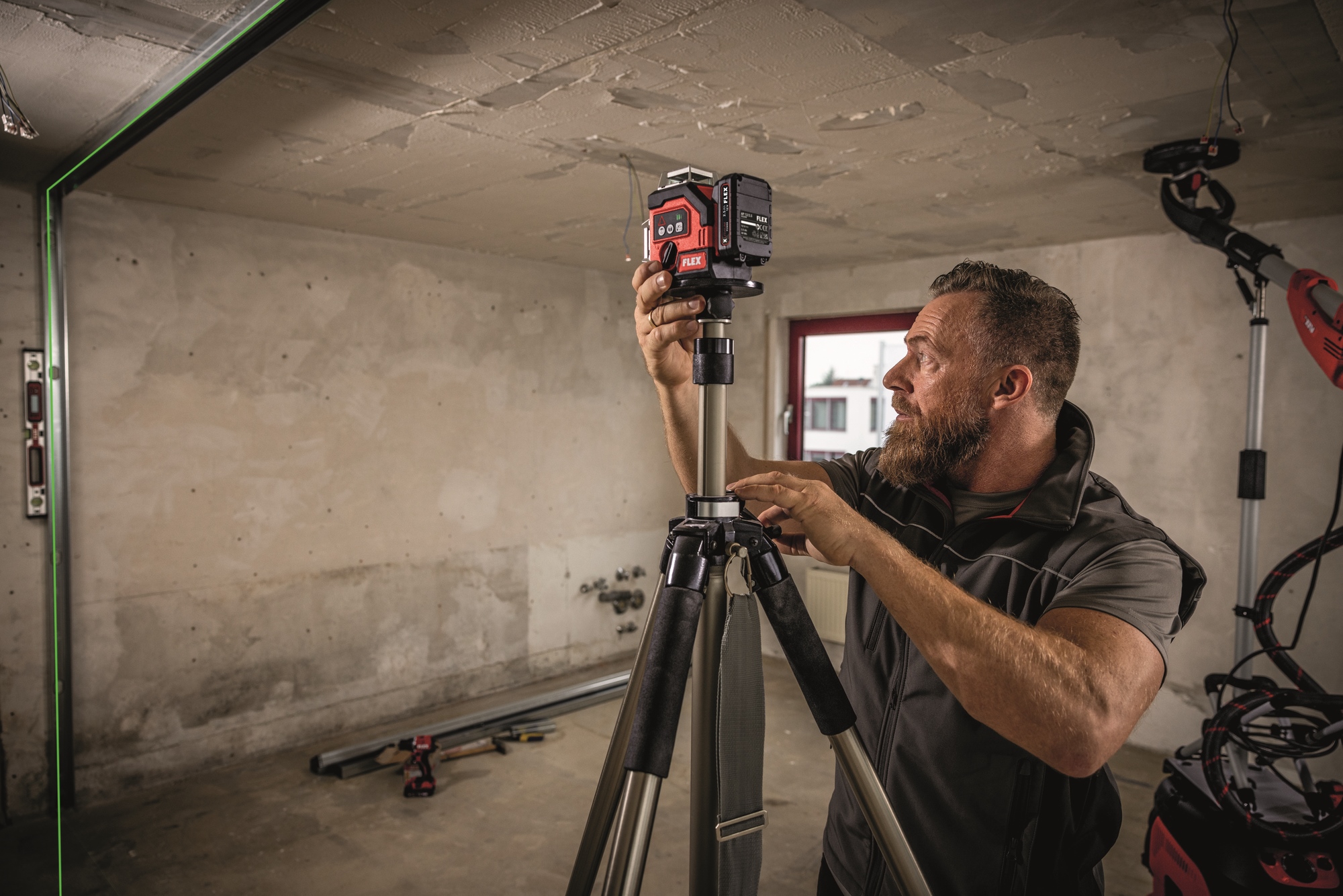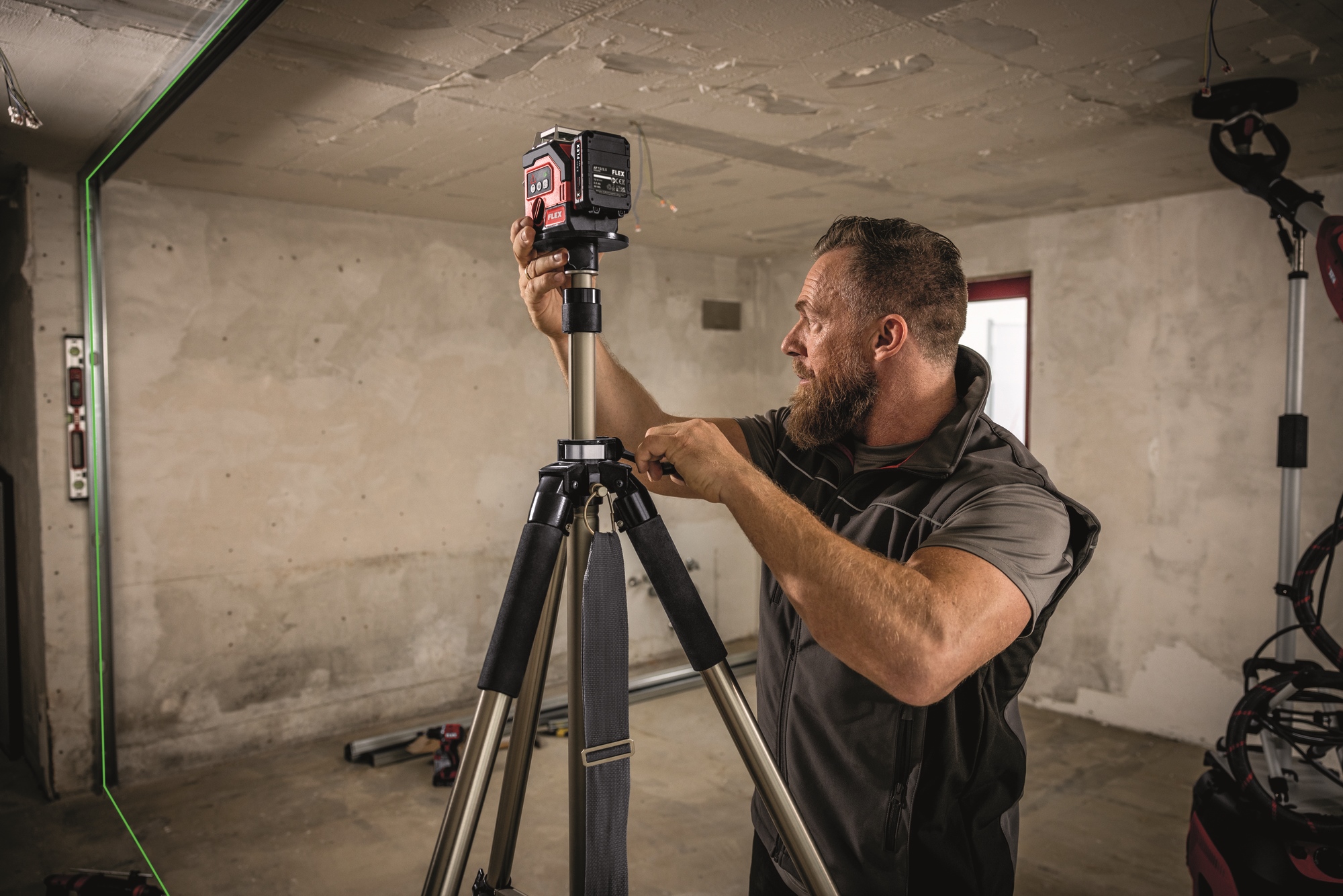 Durch vertikales und horizontales Nivellieren ist er bestens geeignet für den Innenausbau, zum Ausrichten von Türen, Fenstern, Bau- und Wohnelementen, Anlegen von Fliesenspiegeln etc. und für unterschiedlichste Anwendungen auf Baustellen