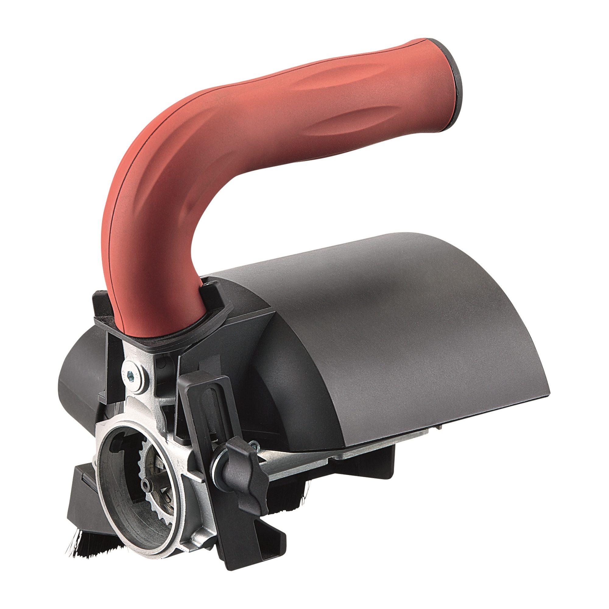 Schleifvorsatz zum Bürsten für die TRINOXFLEX. Mit abnehmbarer Schutzhaube und Absauganschluss Ø 32 mm für staubarmes Arbeiten. Inklusive Führungsanschlag und vibrationsgedämpftem ergonomischen Handgriff. Werkzeugloser Schleifwerkzeugwechsel über patentiertes Schnellwechselsystem.