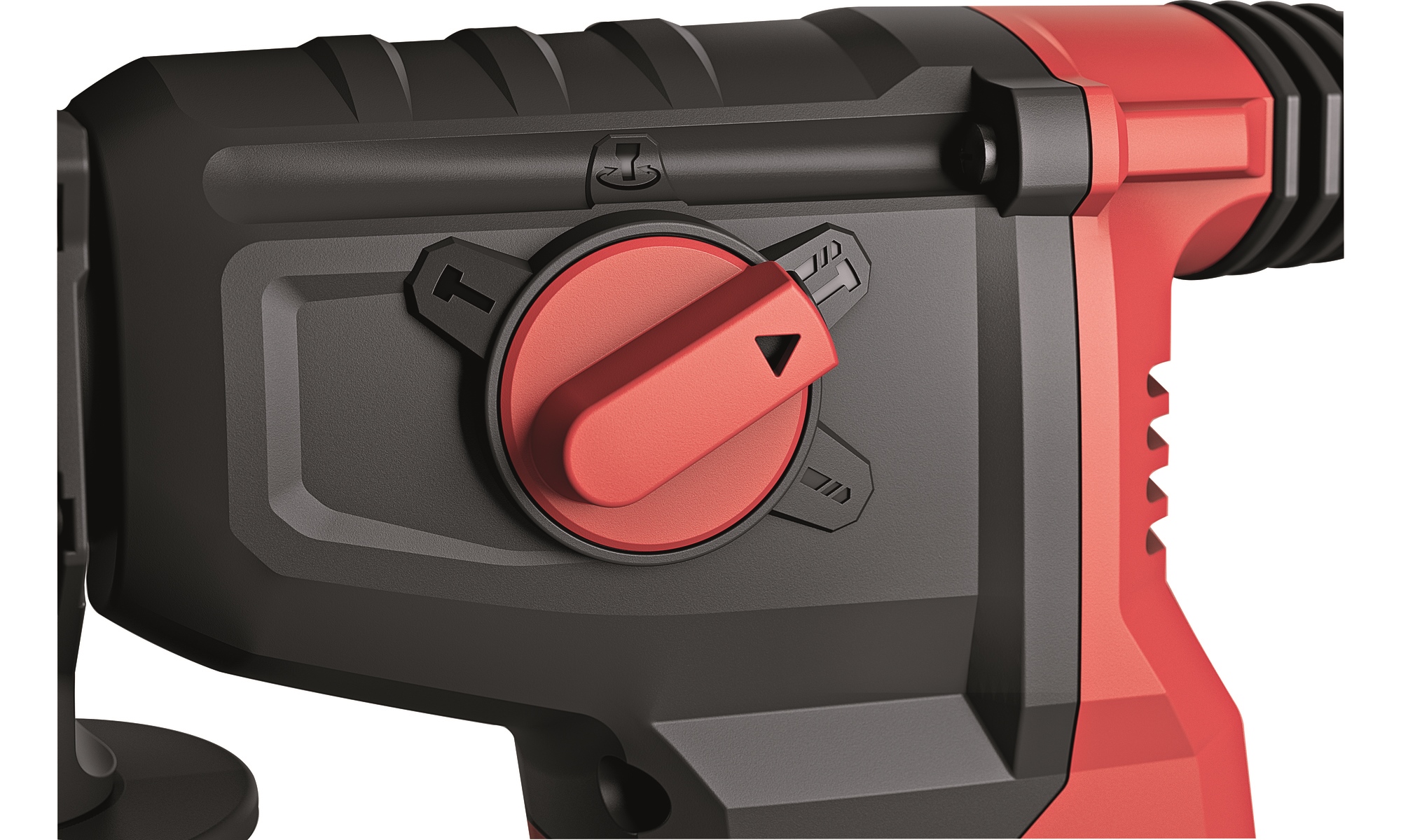 Funktionsschalter mit vier Funktionen: bohren, hammerbohren, meißeln, Meißeljustierung