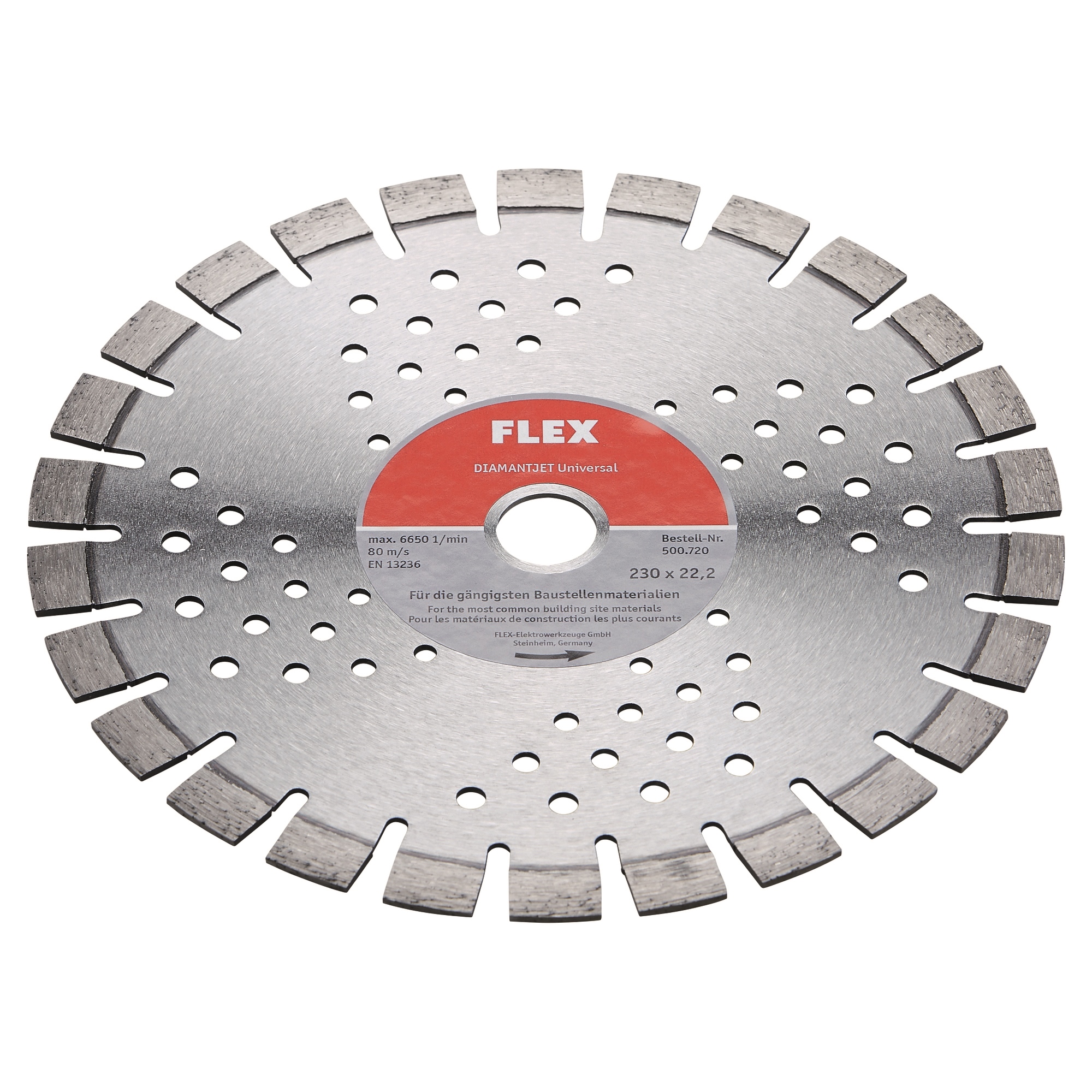 Universaltrennscheibe für die gängigsten Baustellenmaterialien wie z.B. Beton B45 (harter Beton), weiche Granite, Klinker, Ziegel.