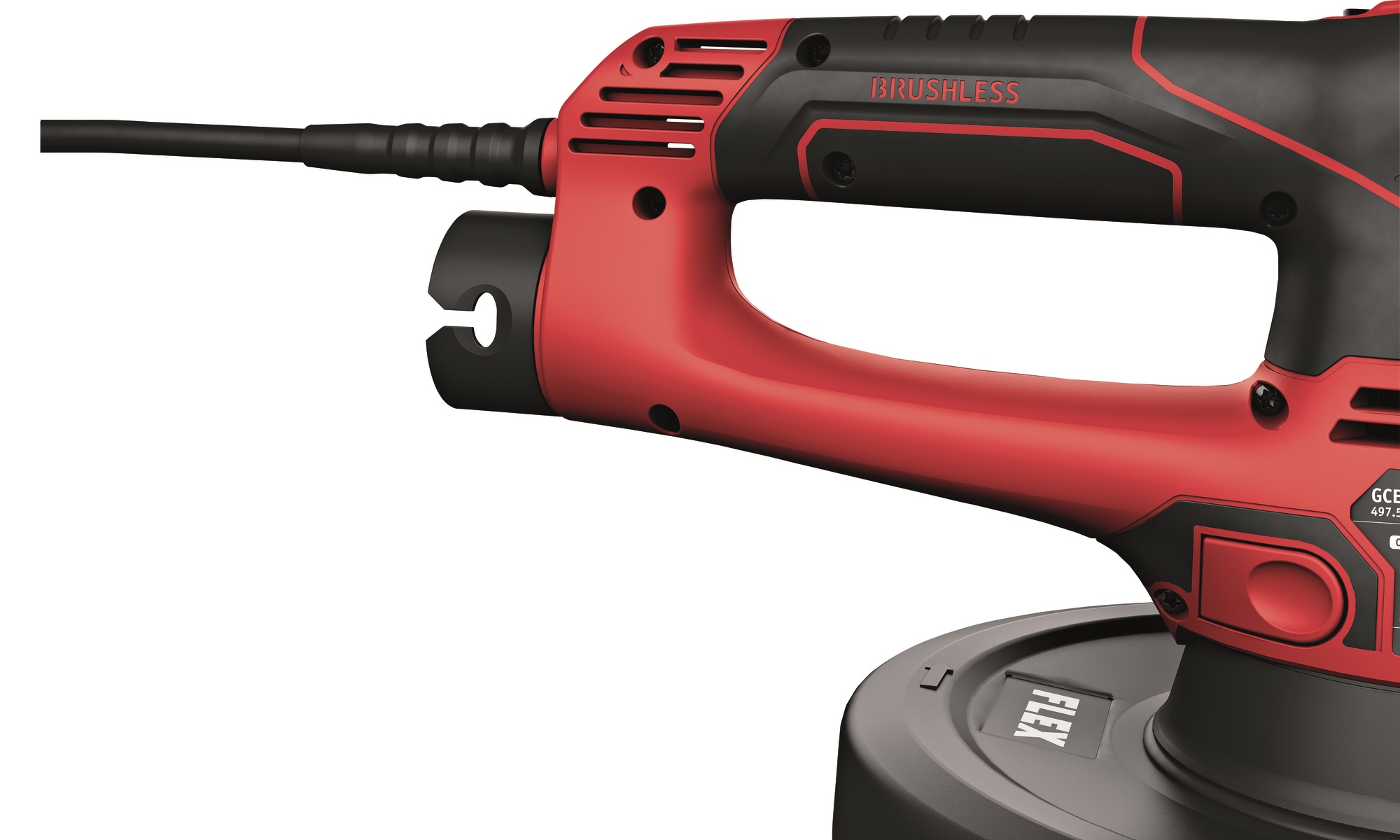 Definierte Schlauchführung und wirkungsvolle Staubabsaugung durch großen Absaugquerschnitt. Der Saugschlauch wird direkt mit dem FLEX Clip-System an die Maschine angeschlossen