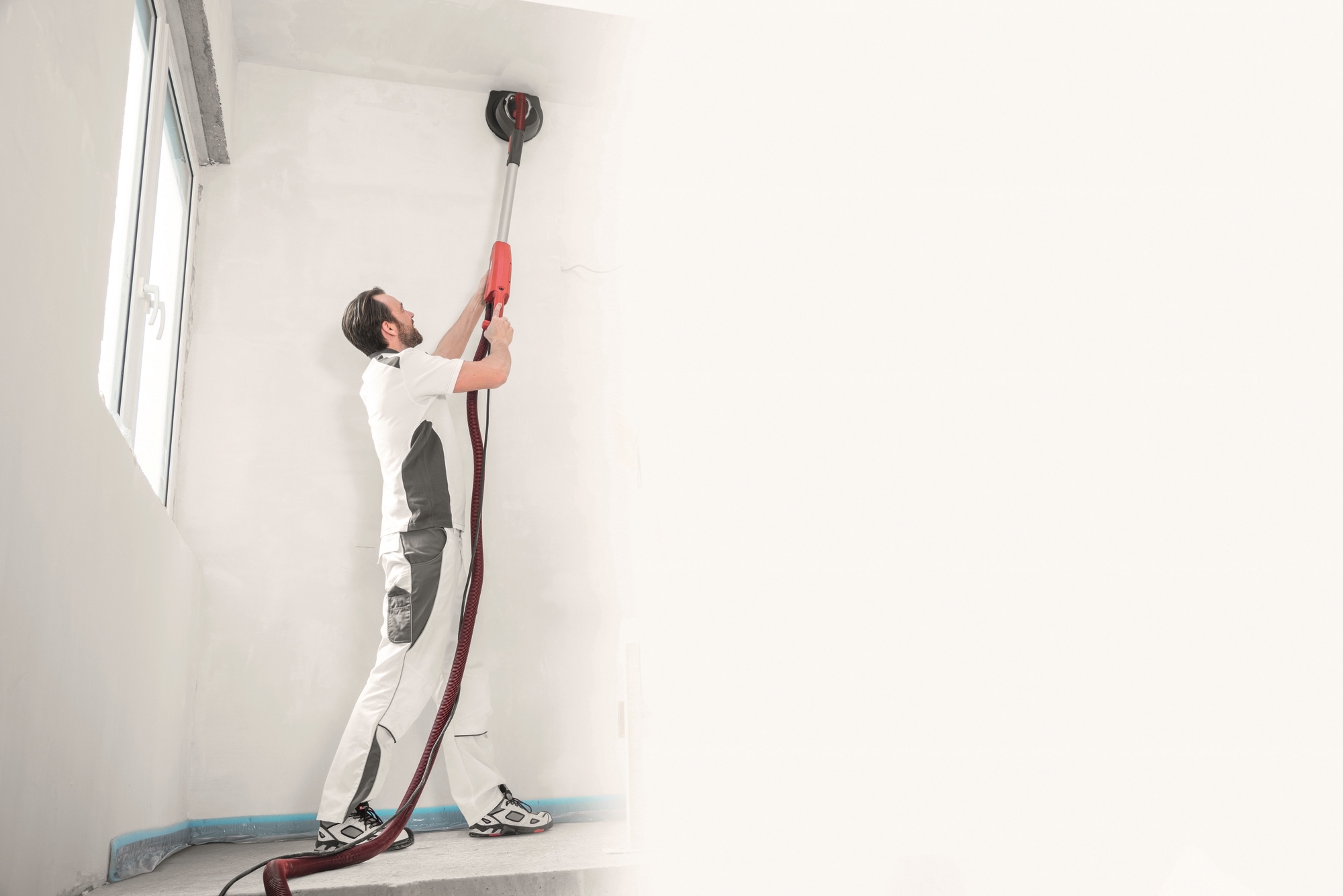 Kardanisch gelagerter Schleifkopf sorgt für hohe Flexibilität und optimale Anpassung beim Schleifen an Wänden und Decken.