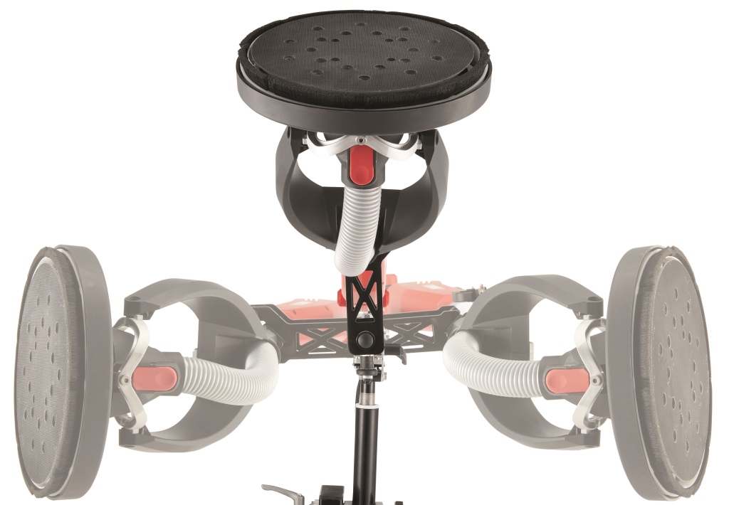 Werkzeugloser Auf- und Abbau durch Schnellspannelemente. Gestell verfügt über einen robusten Klappmechanismus für den einfachen Transport