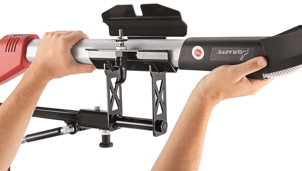 Schwenkbare Werkzeugaufnahme beidseitig um 90°, inkl. drehbares Gelenk für optimale Beweglichkeit, Anpassung an Decken, Wänden und für einen perfekten Schliff an schrägen Flächen