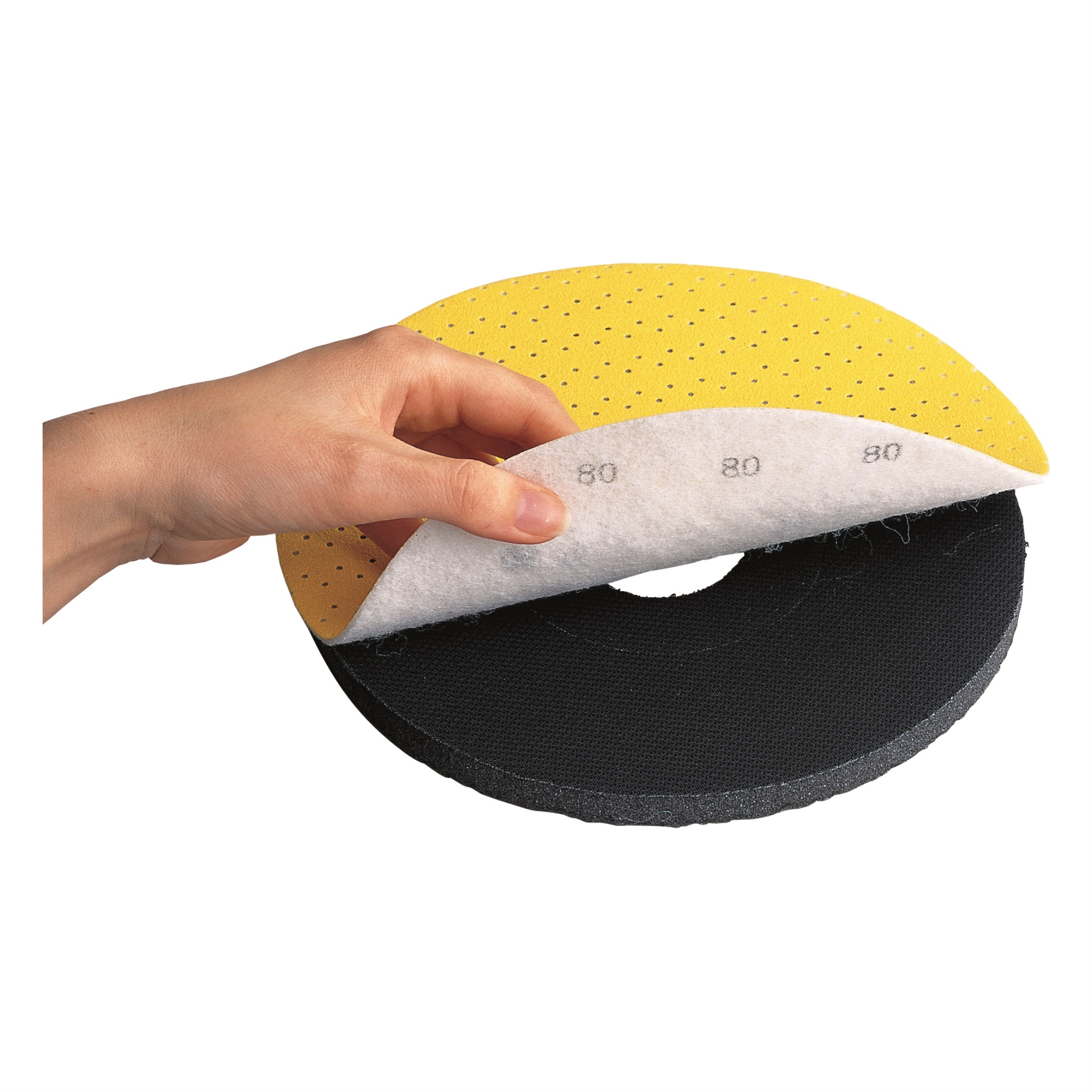 Klett-System zur Befestigung der Schleifmittel. Geeignet für hohen Abtrag mit grober Schleifkörnung auf unterschiedlichen Untergründen. Für GE 5 / R, GSE 5 / R, GE 7, GCE 6-EC, GE MH 18.0-EC.