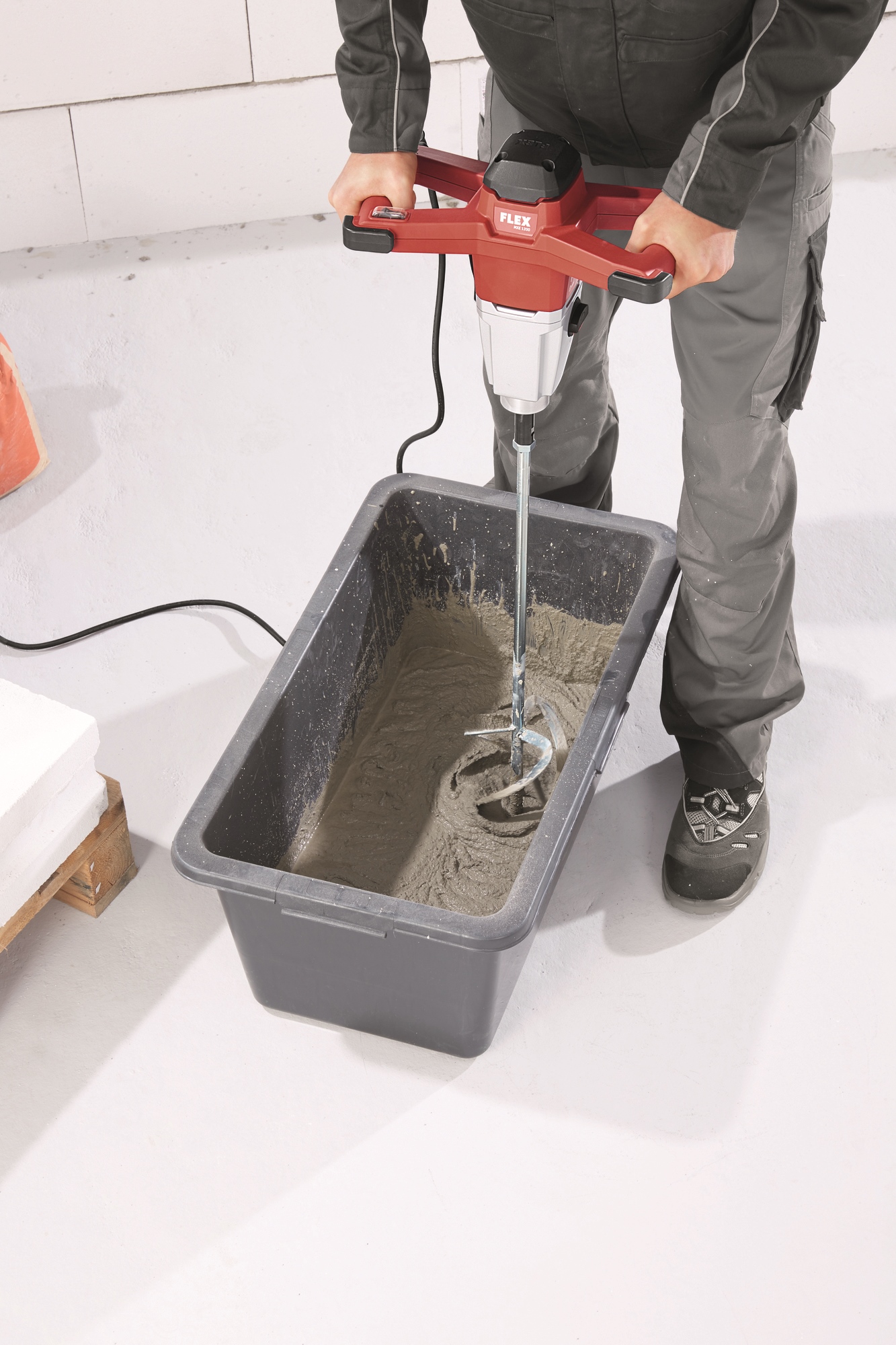 Mit Rührstab WR2 für Rührgut: pastös bis zäh. Fliesenkleber, Fugenmasse, Ausgleichsmasse, Kleber, Fertigputz, Klebemörtel, ...