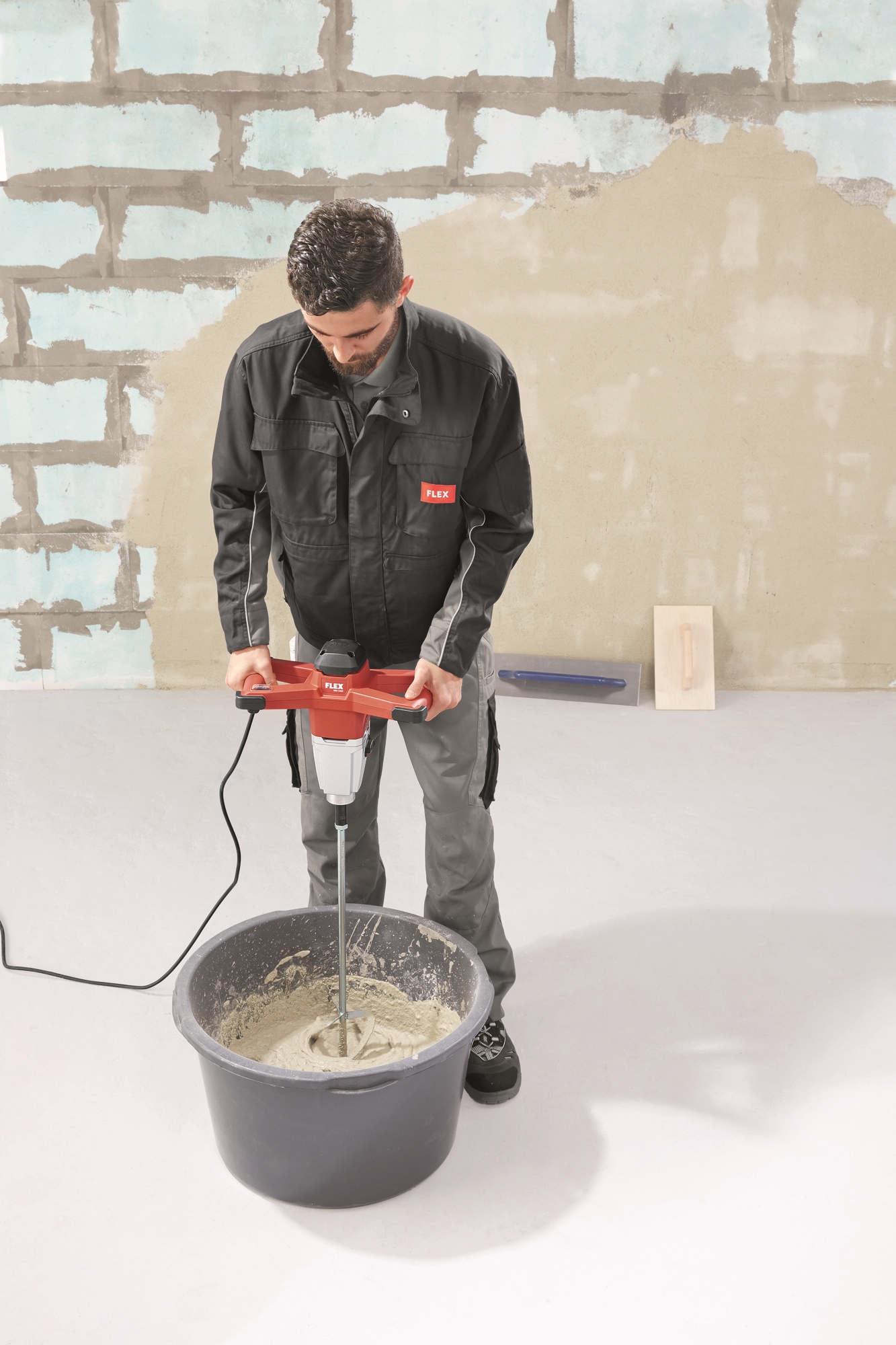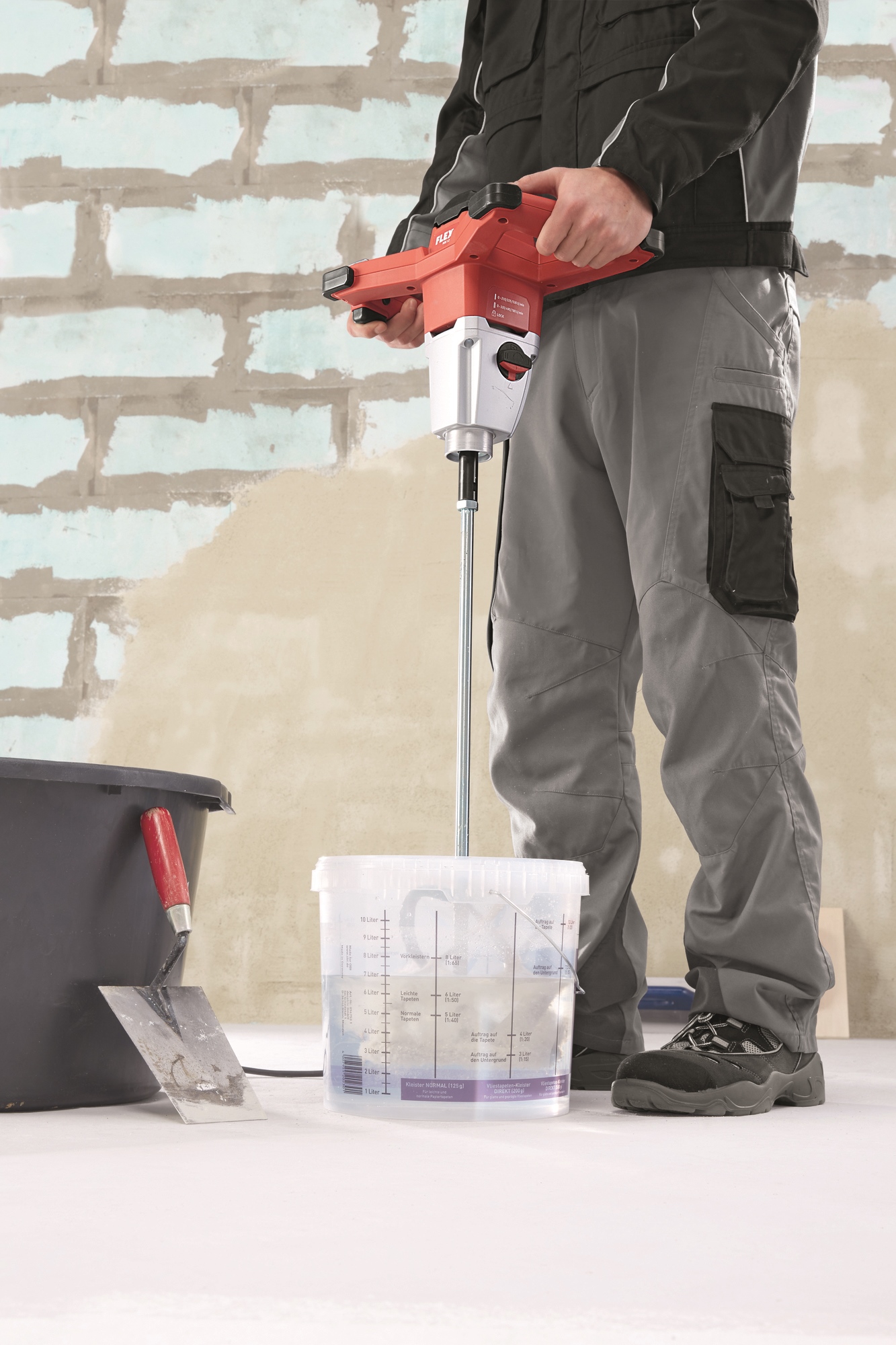 Mit Rührstab WR2 für Rührgut: pastös bis zäh. Fliesenkleber, Fugenmasse, Ausgleichsmasse, Kleber, Fertigputz, Klebemörtel, ...