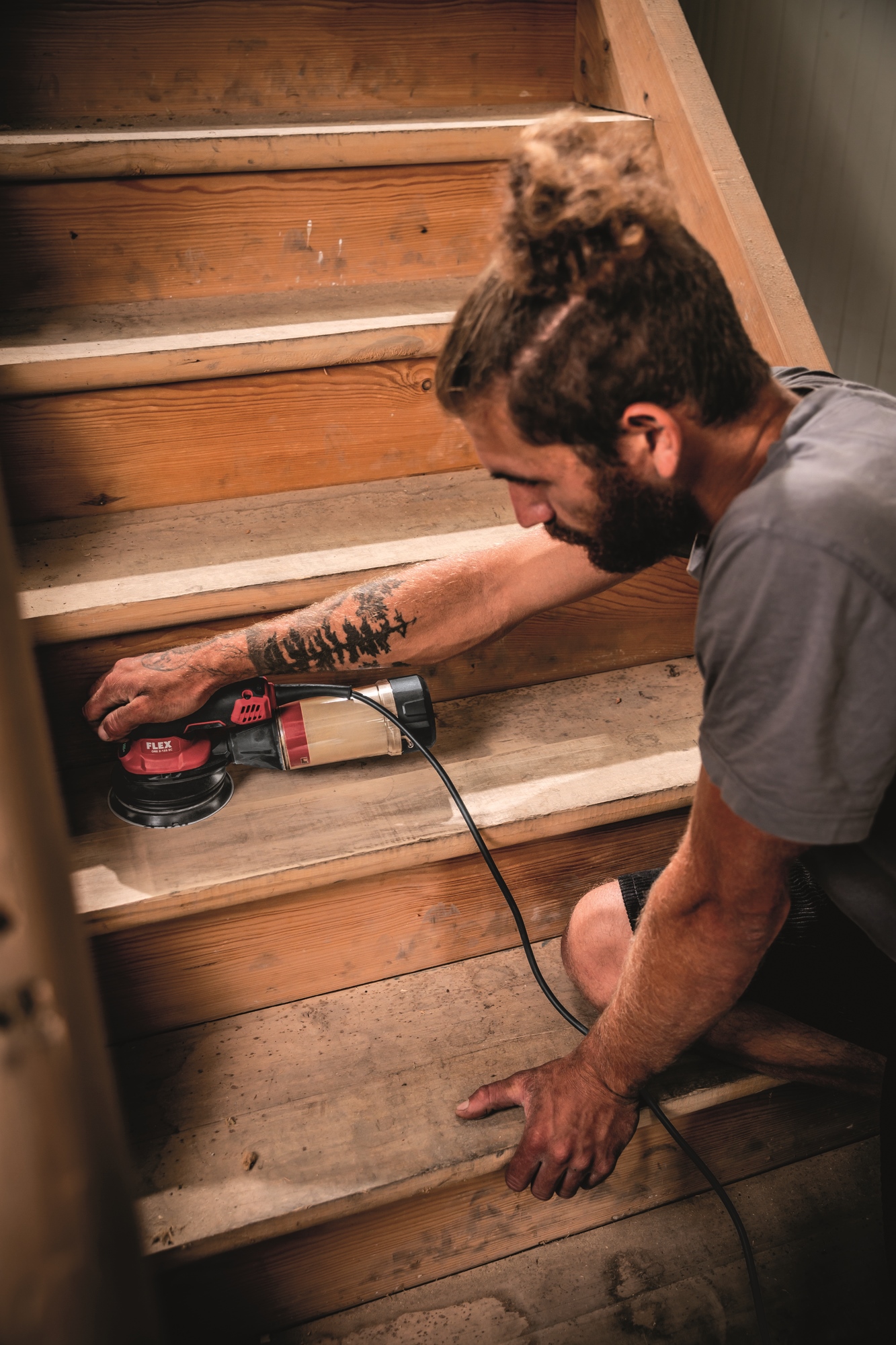 Leichter, kompakter Einhand-Exzenterschleifer, besonders ergonomisch und vibrationsarm durch spezielle Auswuchtung für ermüdungsfreies und gelenkschonendes Arbeiten