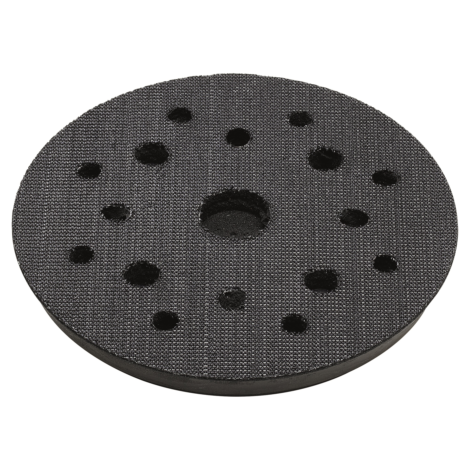 Schleifteller aus hoch strapazierfähigem Spezialmaterial mit Absauglochung (8x). Lochkreis Ø 90 mm.