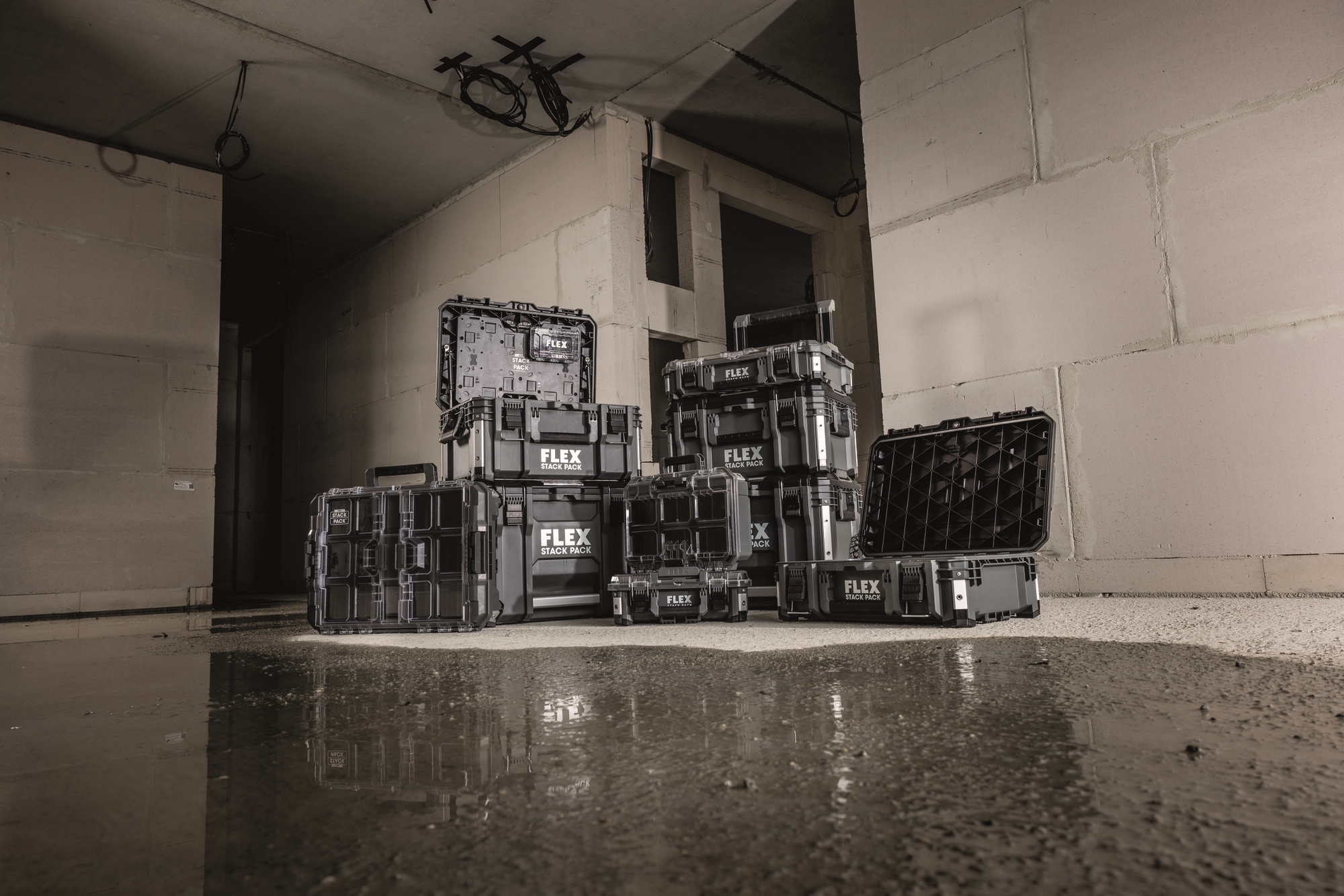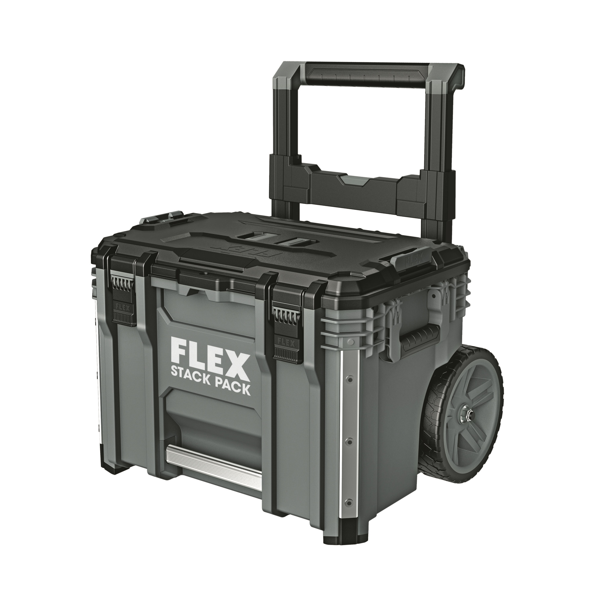 Mit dem robusten Aufbewahrungs- und Transportsystem STACK PACK lassen sich Werkzeuge und Zubehör problemlos zur Baustelle transportieren. Die Boxen aus schlagfestem Kunststoff mit Aluminium verstärkten Ecken schützen Werkzeuge und Zubehöre vor den härtesten Baustellenbedingungen. Die Boxen sind mit einem langlebigen Metallriegelverschluss ausgestattet, zusätzliche Griffe sorgen für ein flexibles und komfortables Handling. Ineinandergreifende Schnellverbindungsverschlüsse bieten schnelle, flexible und mühelose Verbindung der einzelnen Boxen, so dass das Aufbewahrungssystem nach individuellen Bedürfnissen zusammengestellt werden kann. Ideales Basiselement: Trolley mit abnehmbarenTeleskopgriff, robusten Rädern Ø 23 cm und großer Transportbox. Diese Box ist mit Gasdruckfedern ausgestattet, die dafür sorgen, dass sie geöffnet bleibt.