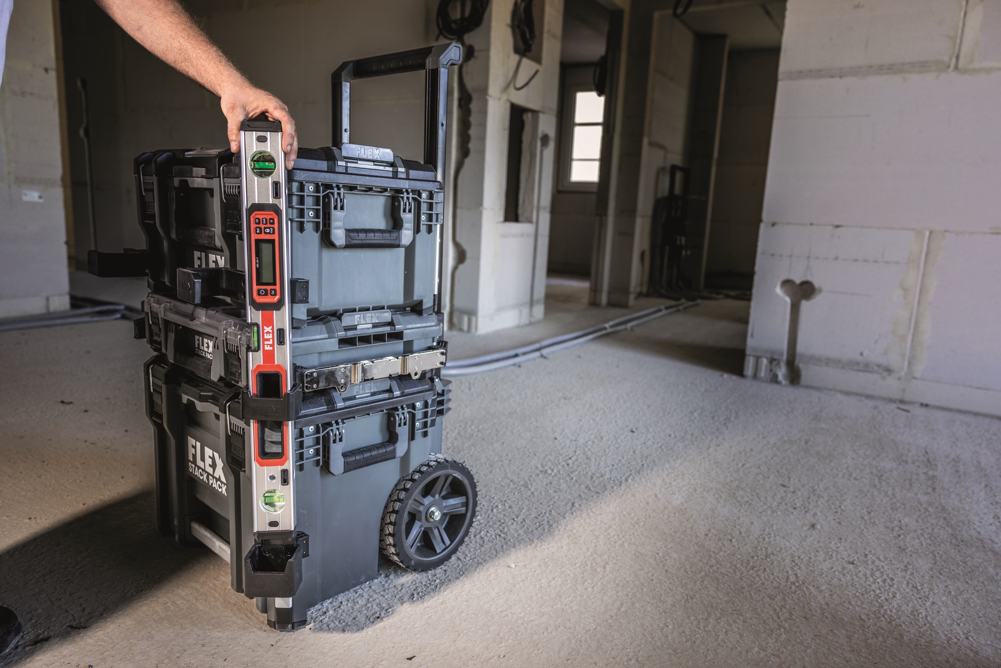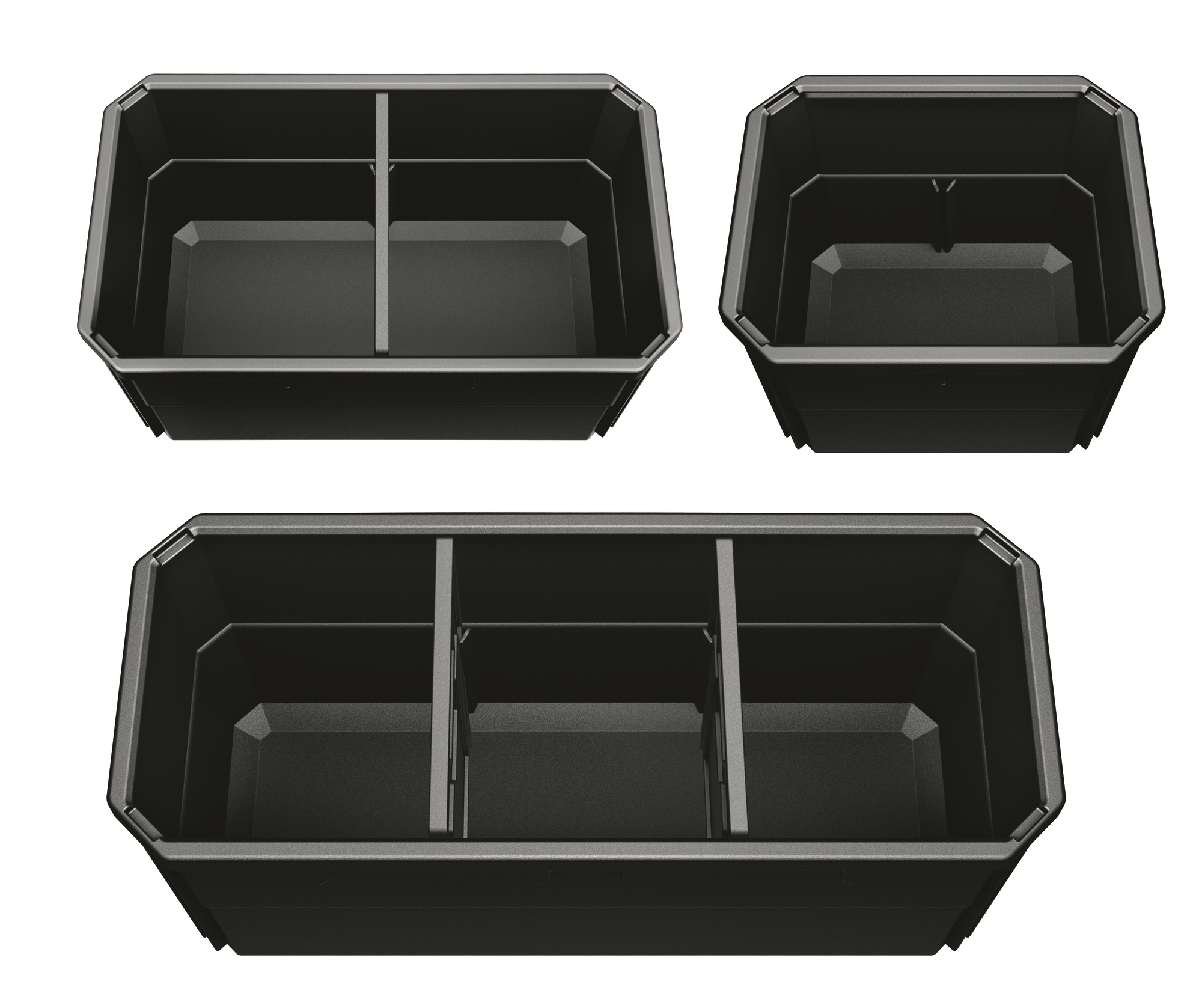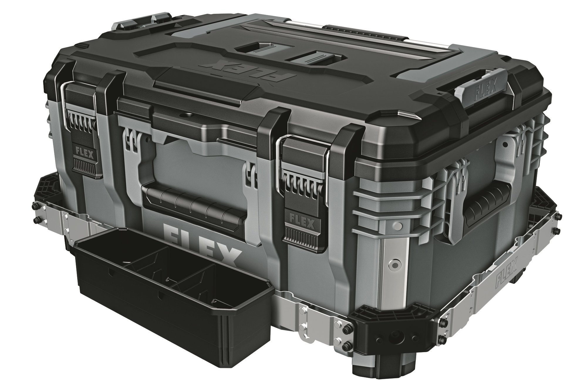 Mit dem robusten Aufbewahrungs- und Transportsystem STACK PACK lassen sich Werkzeuge und Zubehör problemlos zur Baustelle transportieren. Die Boxen aus schlagfestem Kunststoff mit Aluminium verstärkten Ecken schützen Werkzeuge und Zubehöre vor den härtesten Baustellenbedingungen. Die Boxen sind mit einem langlebigen Metallriegelverschluss ausgestattet, zusätzliche Griffe sorgen für ein flexibles und komfortables Handling. Ineinandergreifende Schnellverbindungsverschlüsse bieten schnelle, flexible und mühelose Verbindung der einzelnen Boxen, so dass das Aufbewahrungssystem nach individuellen Bedürfnissen zusammengestellt werden kann. Im Small Organizer mit durchsichtigem Deckel sind Kleinteile wie Bit Boxen, Schrauben usw. übersichtlich aufbewahrt. Inkl. vier Zubehörbehälter mit Trennwänden.