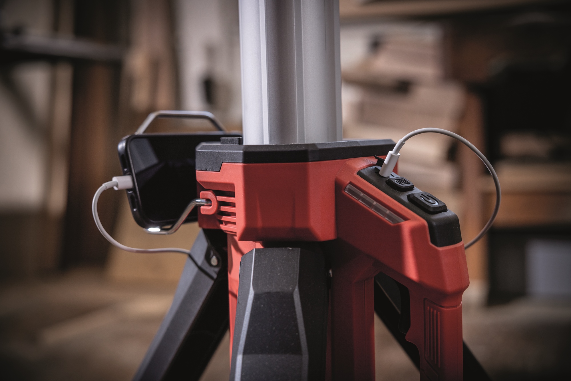 Leistungsstarker Akku-Baustrahler mit 3 Helligkeitsstufen, 1000, 2000 und 4000 Lumen