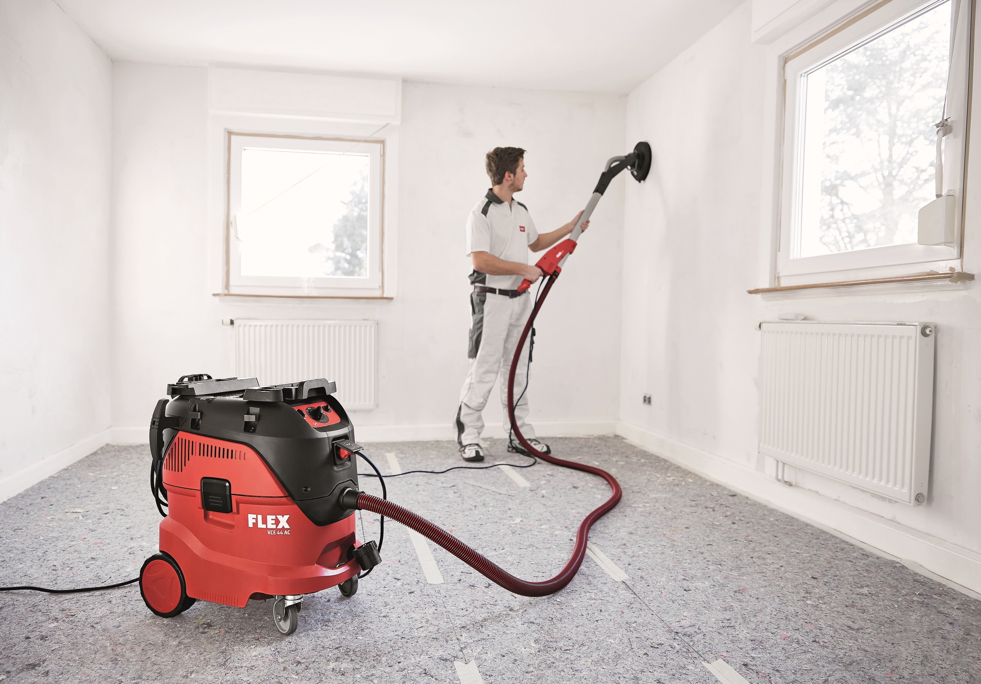 Die Volumenstromregelung über den Drehschalter reduziert ein mögliches Vakuum auf der Oberfläche bei Lackzwischen- und Feinschliff