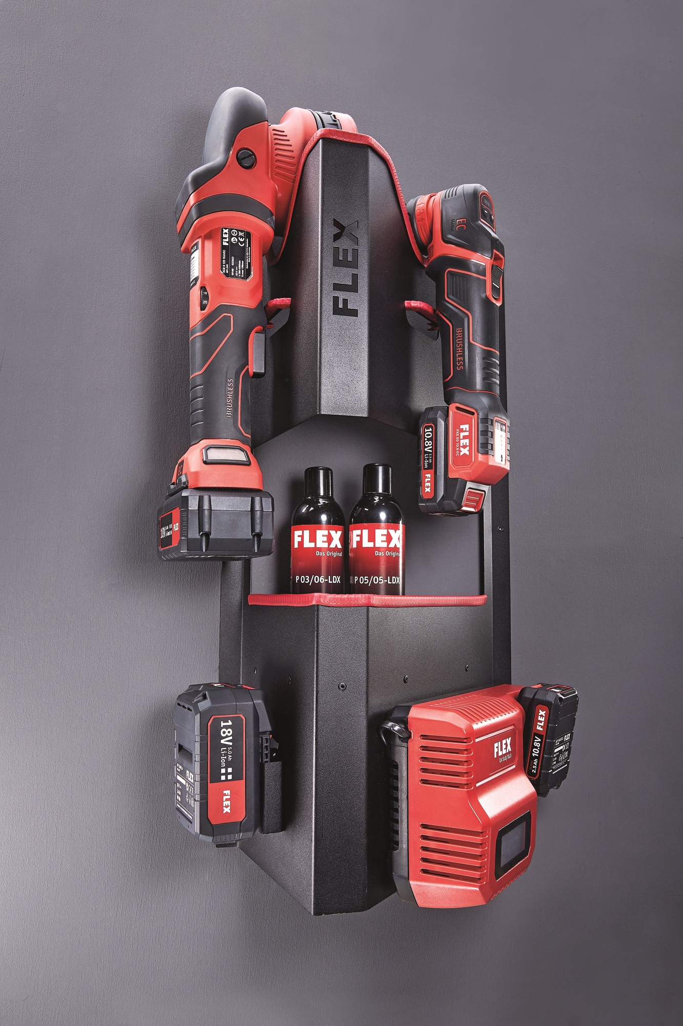 Grosser Wandhalter für 2 Polierer, Zubehöre, Adapter und Verbrauchsmaterialien aus hochwertigem pulverbeschichteten Stahl. Durch die innovative Form lassen sich die Maschinen platzsparend und durch den Kantenschutz, als Schutz vor Kratzern, sicher lagern. Zusätzlich bietet der große Halter noch Ablagemöglichkeiten für Polituren, Adapter etc. sowie eine Akku-Halterung, Befestigungsmöglichkeit für das Ladegerät und eine Kabelhalterung. Bessere Struktur, Organisation und Ausstattung des Arbeitsumfeldes. Somit entsteht ein professioneller Eindruck bei Anwendern und Kunden.