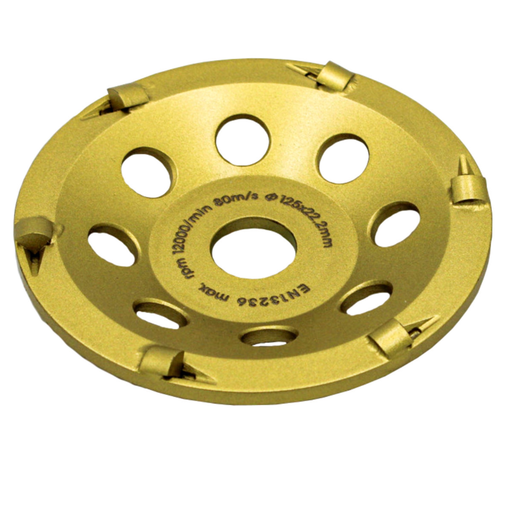 Schleifteller bestückt mit polykristallinen Diamant-Segmenten. Zum Abtragen von thermisch empfindlichen Belägen wie Klebstoffe, Dichtstoffe, plastische Anstriche, Bitumenbeschichtungen auf mineralischen Untergründen. Durch die PKD-Segmente werden Beläge schnell und effektiv abgetragen ohne dabei zu verkleben