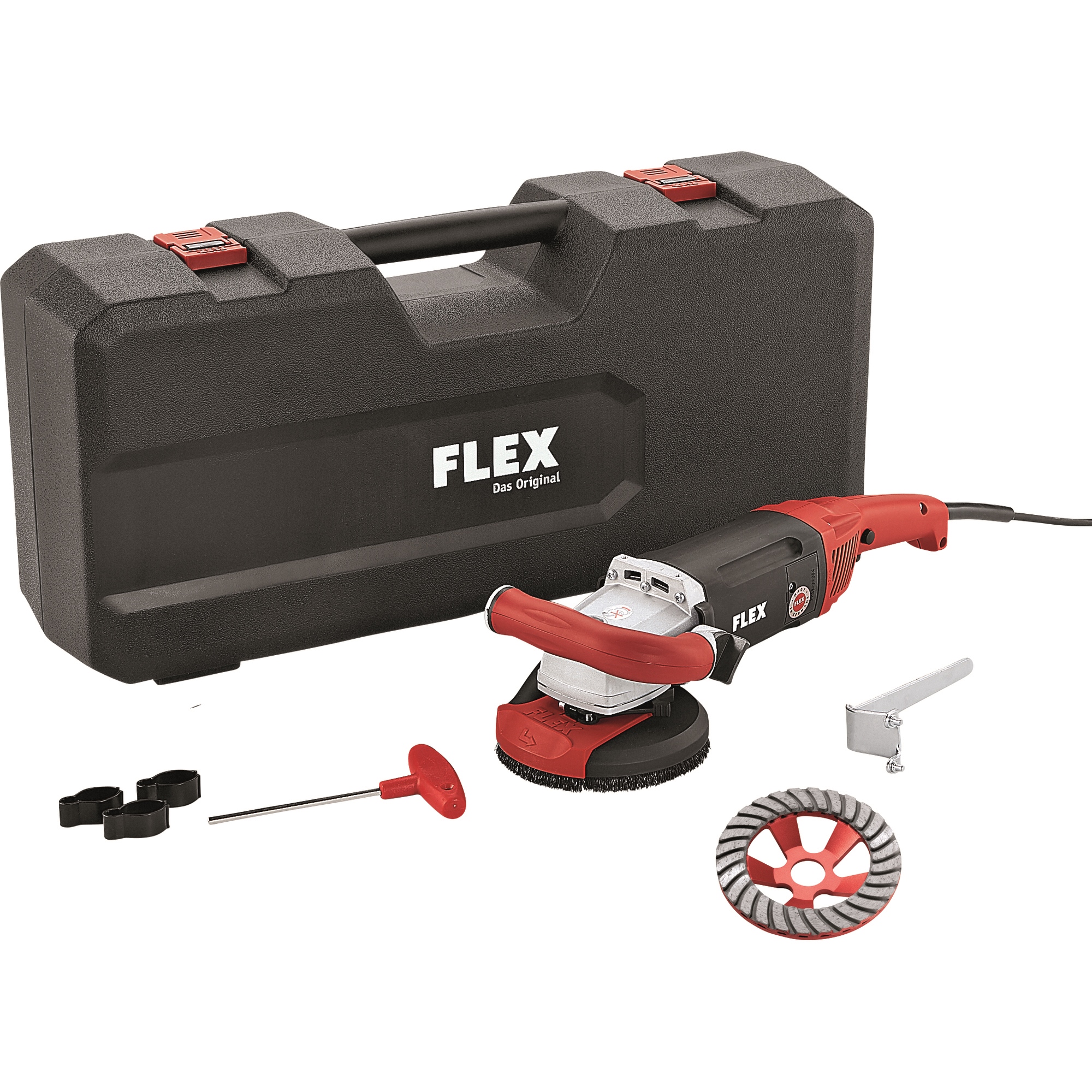 {+Électronique à microprocesseur : avec maintien constant de la vitesse de rotation, démarrage en douceur, protection contre les surcharges et surveillance de la température-}{-Moteur haute performance fiable de 1 800 watts avec réserves de puissance suffisantes-}{-Aspiration de la poussière : protège contre la poussière abrasive, réduit l'usure du disque, maintient les pores du béton ouverts pour le nouveau revêtement-}{-Blocage de broche encastré contre toute utilisation involontaire-}{-Avec poignée ergonomique à réglage continu, amortissant les vibrations, pour une manipulation et un guidage optimaux de la machine-}{-Capot de protection : avec segment pivotant pour poncer jusqu'au mur et réglable en hauteur pour s'adapter à la hauteur du disque et assurer une aspiration optimale de la poussière -{-Adaptateur pour système FLEX Clip inclus dans la livraison -} {-Avec 125 mm pour le traitement de petites à moyennes surfaces de sol, de mur et de plafond-}{-Plateau de ponçage Turbo-Jet avec une capacité d'enlèvement optimale. La multitude de segments diamantés permet un fonctionnement nettement plus silencieux et un résultat de ponçage plus esthétique. Idéal pour le ponçage de surfaces sur des supports minéraux.+}{cr}Mindestens ein schliessendes -} - Zeichen fehlt.