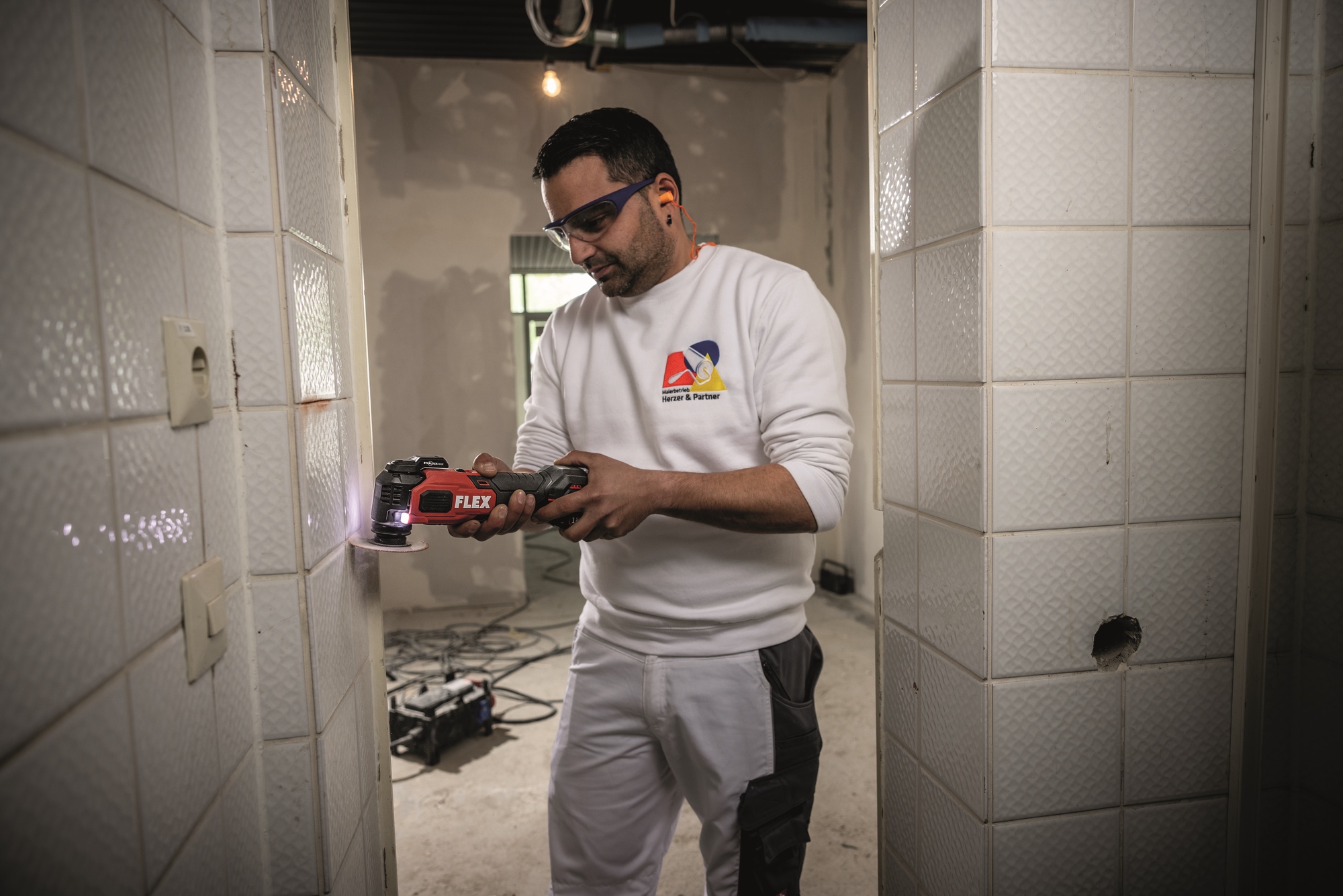 L’outil multifonction peut être utilisé pour les applications les plus diverses comme scier, couper, découper du bois, du métal, du plastique et des plaques de plâtre. Enlever l’ancien mortier de joint de carrelage et la colle, gratter les joints de silicone, la peinture et la colle à moquette, poncer les profilés et les coins.