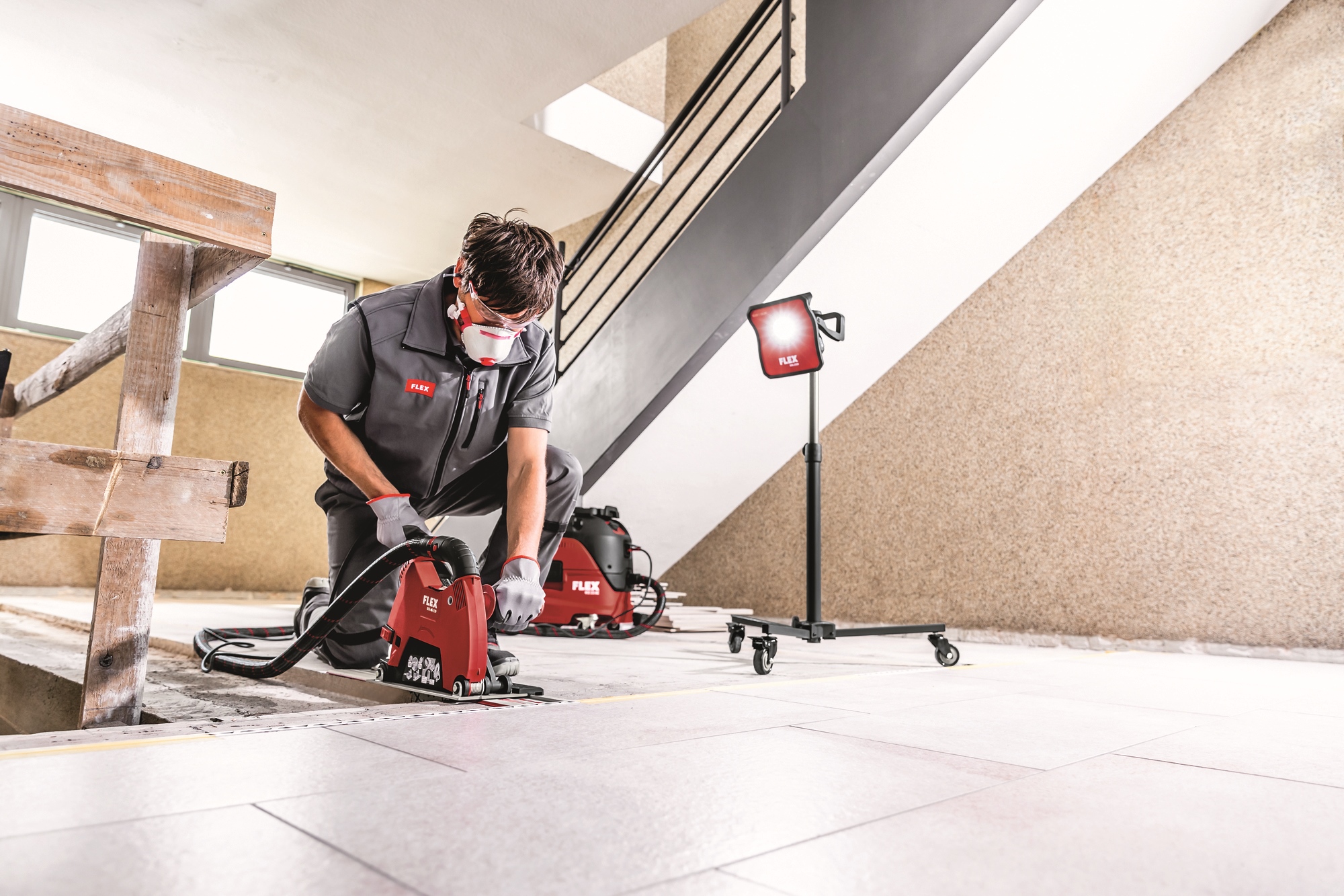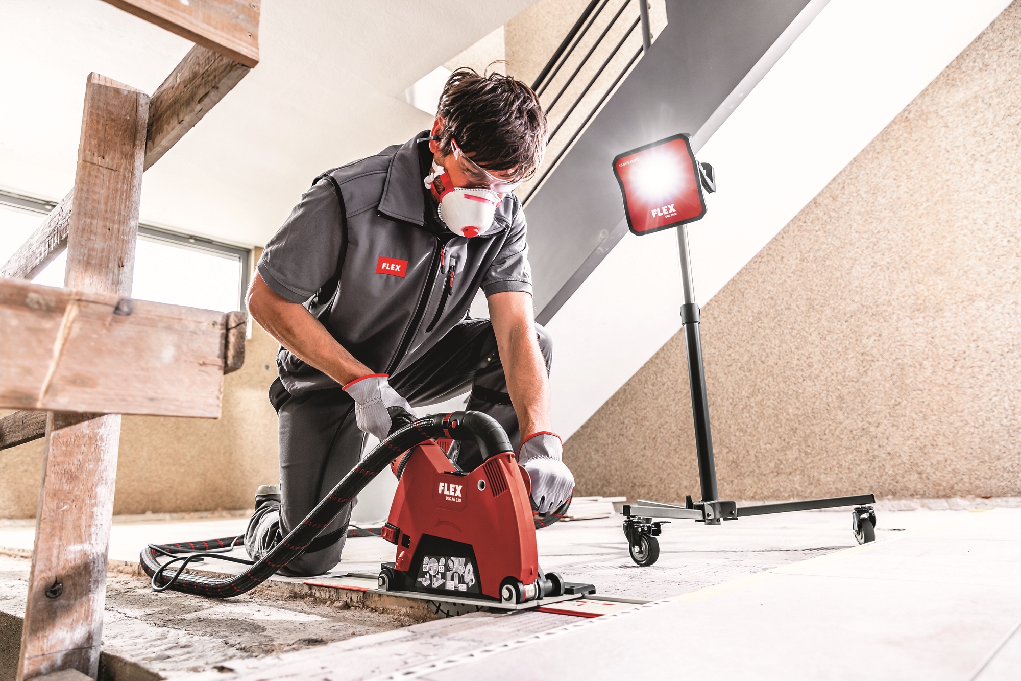 Subito pronta all’uso, levigatrice angolare con cuffia aspirante già montata all’interno della valigetta. Diamantjet - incluso disco per troncatura diamantato standard per calcestruzzo 230 mm
