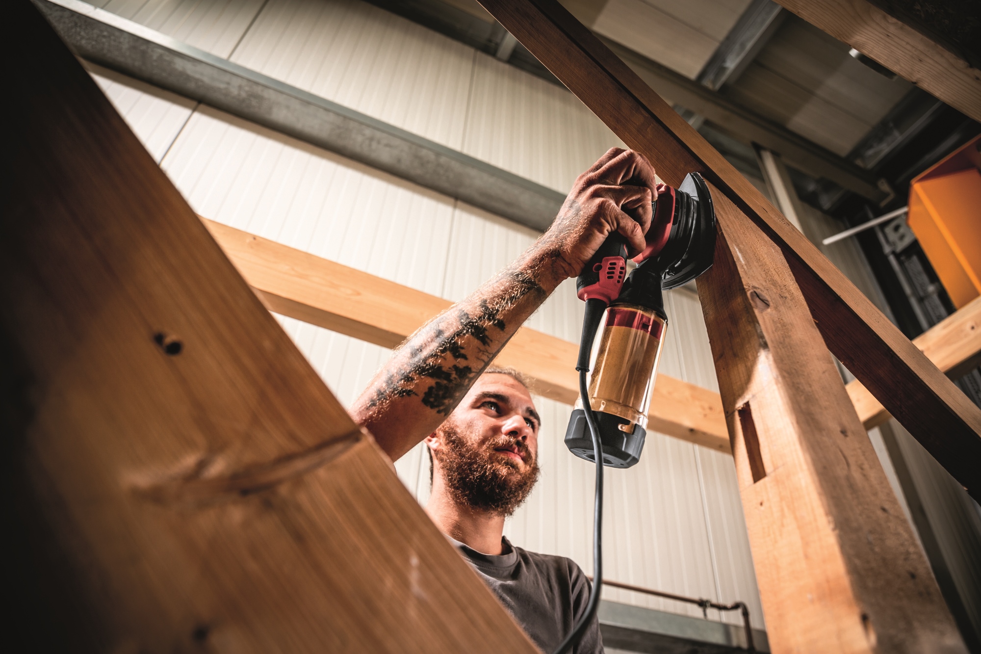 Levigatrice palmare a una mano compatta e leggera, particolarmente ergonomica e a vibrazioni ridotte assicura un elevato comfort di lavoro senza sollecitare le articolazioni dell’utilizzatore grazie allo speciale sistema di bilanciamento