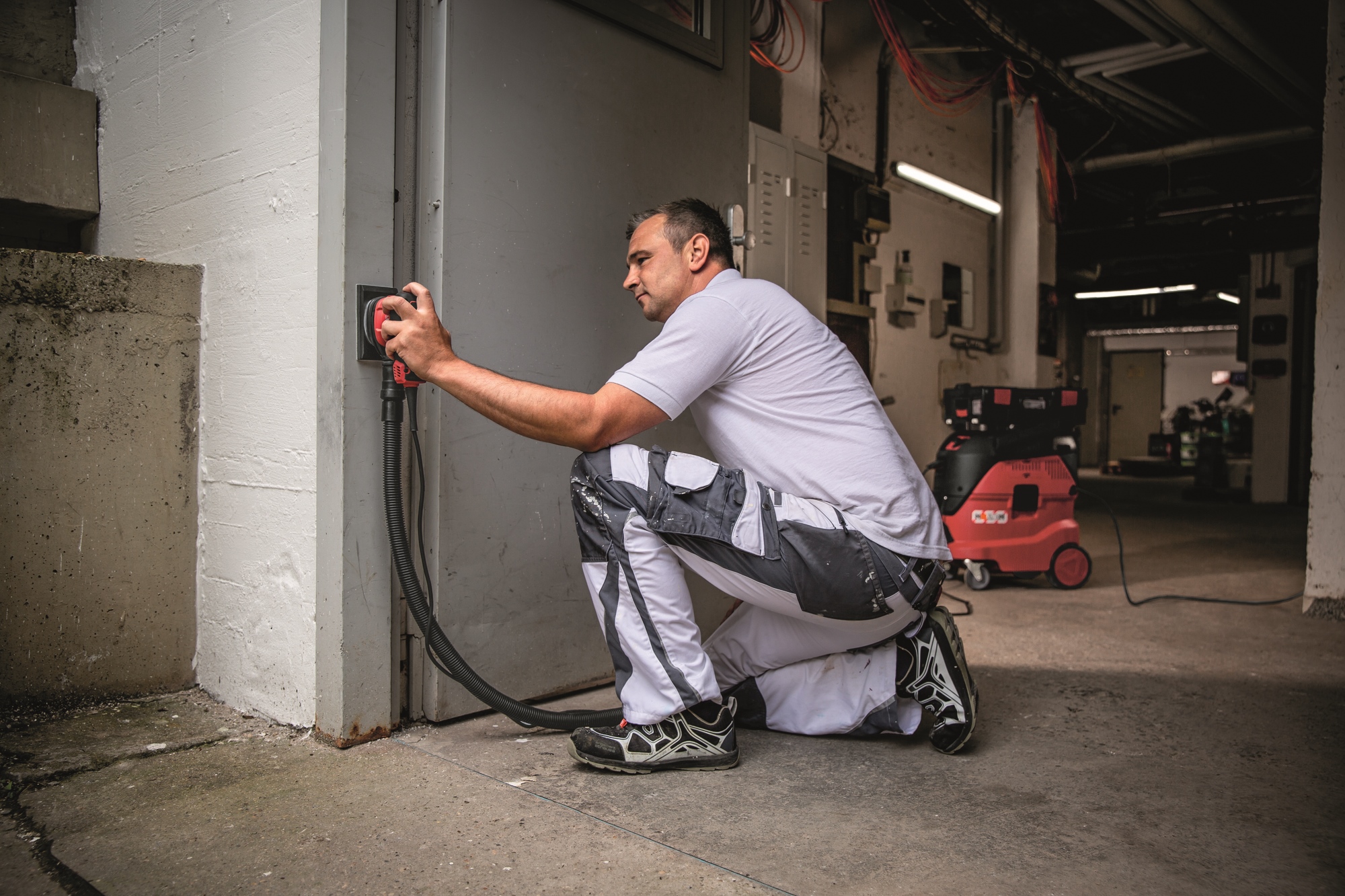 Levigatrice orbitale a una mano compatta e leggera, particolarmente ergonomica e a vibrazioni ridotte assicura un elevato comfort di lavoro senza sollecitare le articolazioni dell’utilizzatore grazie allo speciale sistema di bilanciamento
