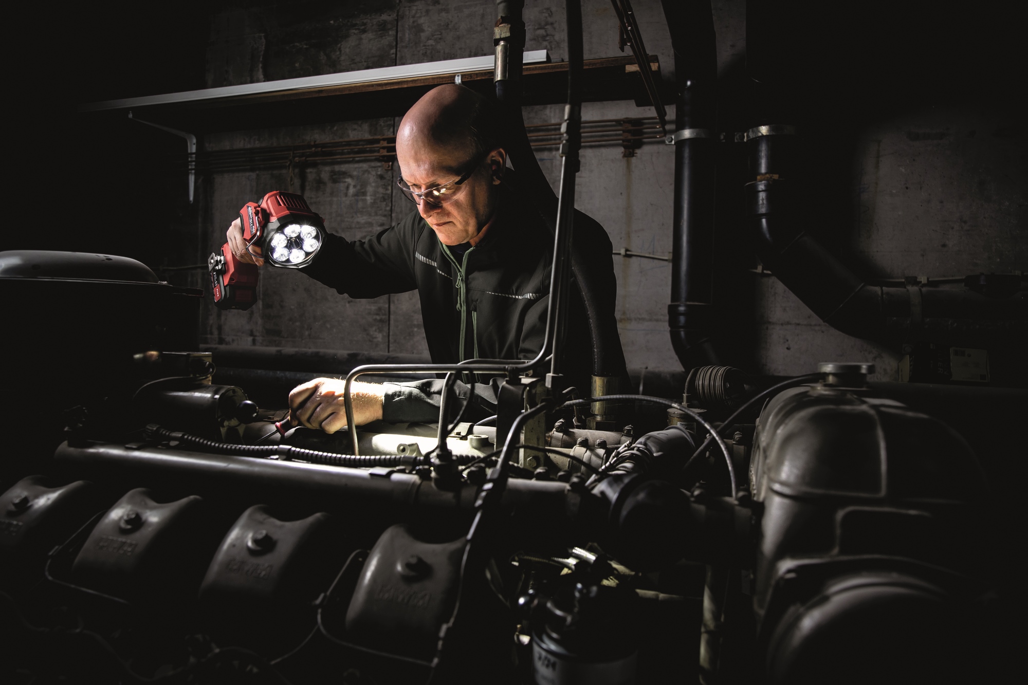 La testa luminosa a LED è orientabile di 180°. Si può in tal modo illuminare ottimamente quasi ogni spigolo e ogni angolo.